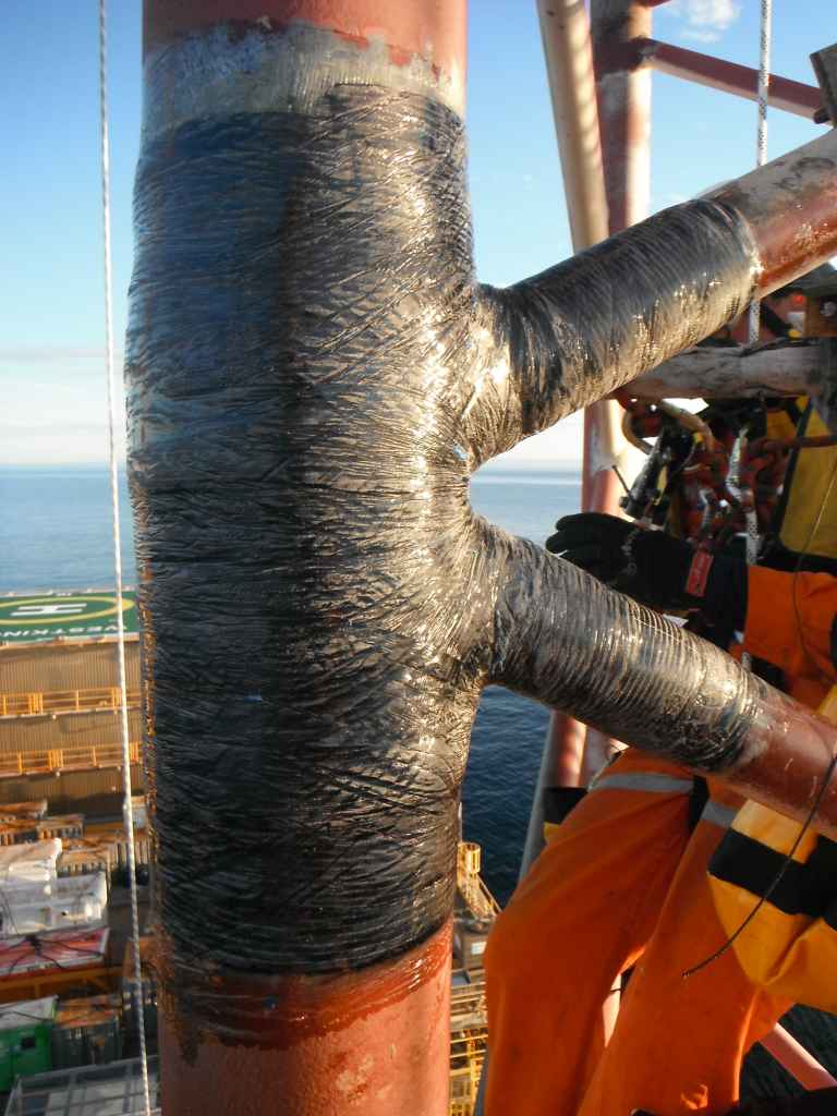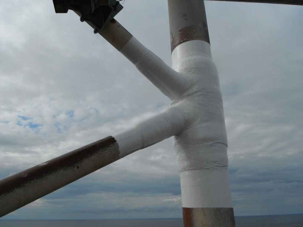 A braced circular column of a Radio Tower suffered significant section loss due to external corrosion. Due to its location on an offshore platform, no hot works were permitted during completion of the repair.